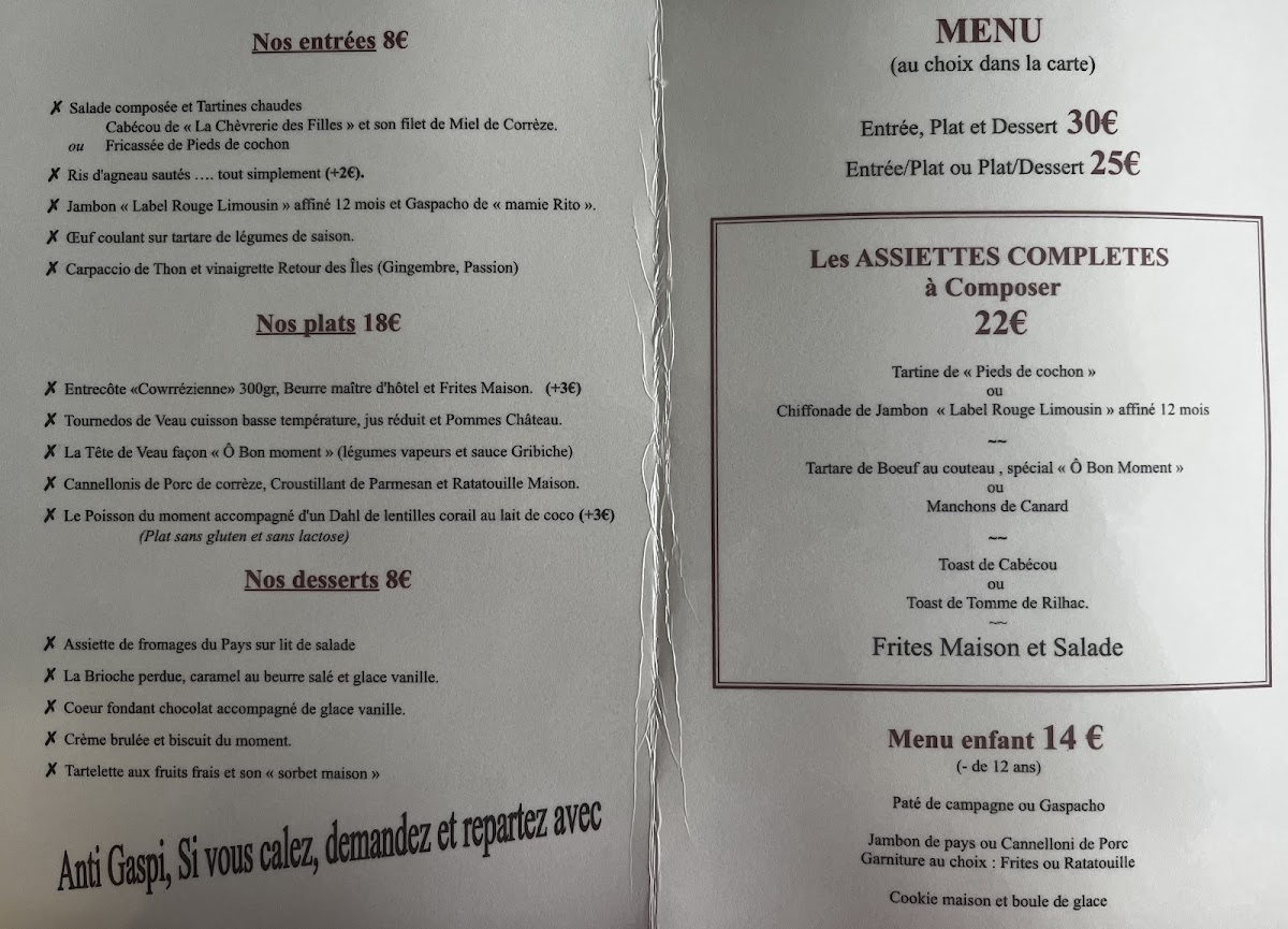 Welcome to O Bon Moment, a hidden gem nestled in the heart of Le Pescher, France. This delightful restaurant invites diners to experience a menu that showcases the essence of local cuisine with a modern twist. Signature dishes such as La tête de veau and L’entrecôte Cowrrezienne sing with flavor, while the Tournedos de Veau offers a tender, slow-cooked delight paired expertly with girolle sauce.
